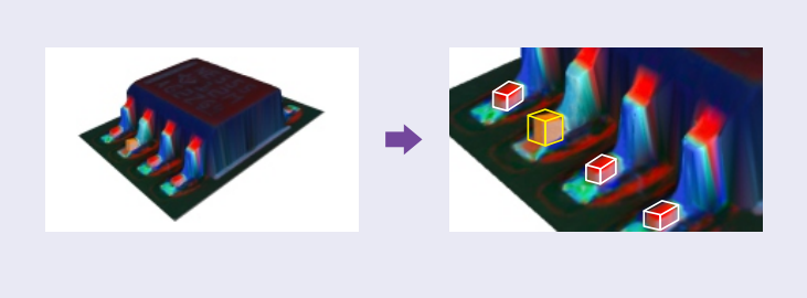 ● 3D技術(shù)與顏色特征算法的完美結(jié)合,高效檢測元件及焊點(diǎn)的不良